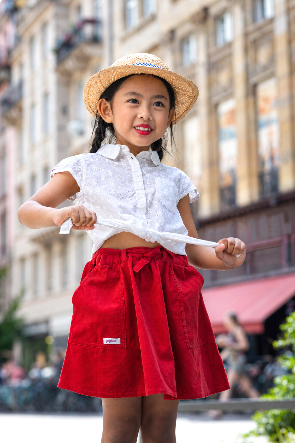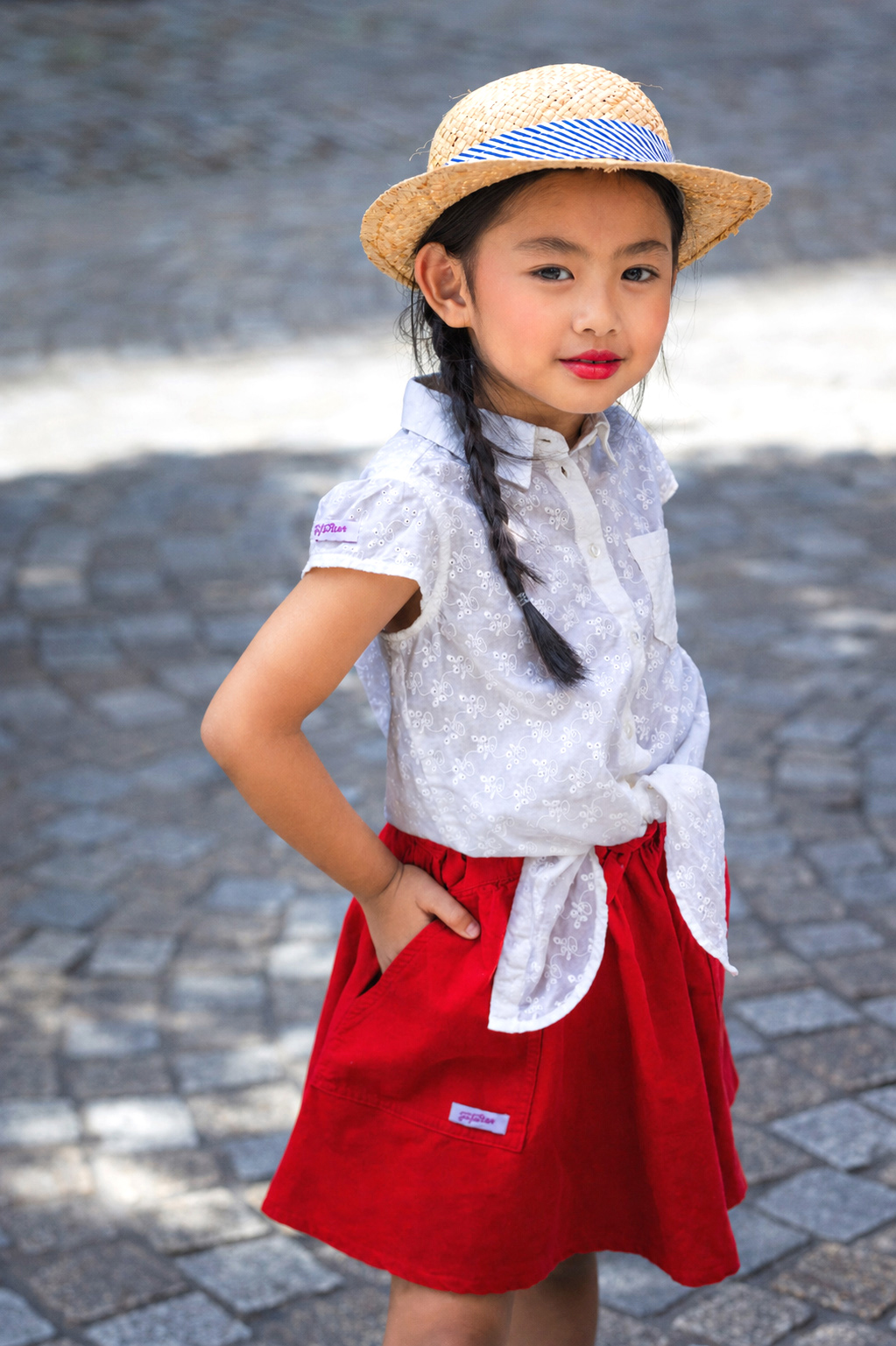 Charme intemporel, la blouse décorée de petites broderies en coton blanc qui se noue sur le devant.